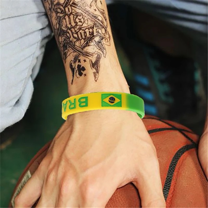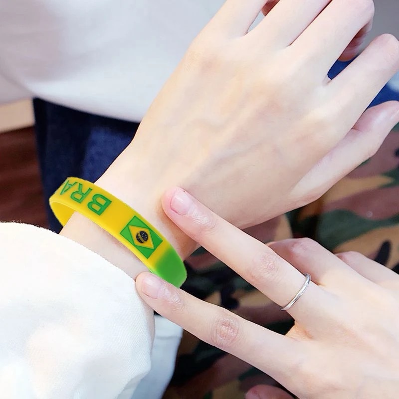 Show the love and add some style with these soft silicone Brazilian Flag bracelets!